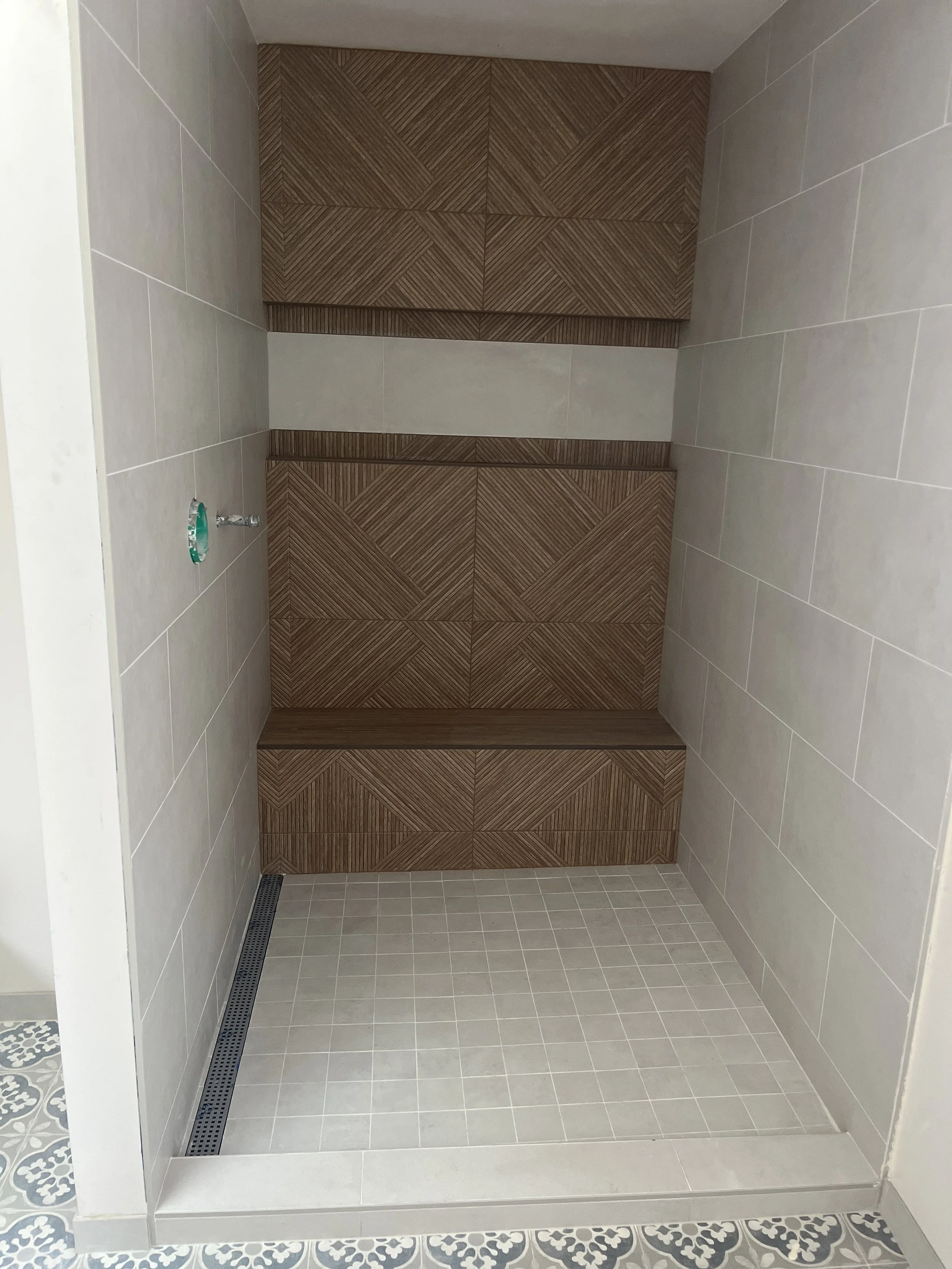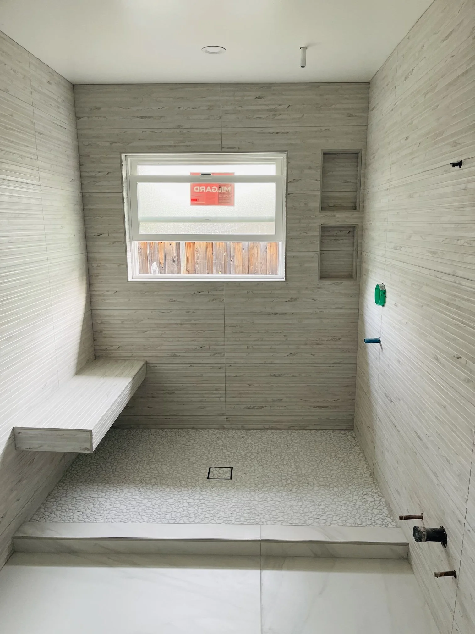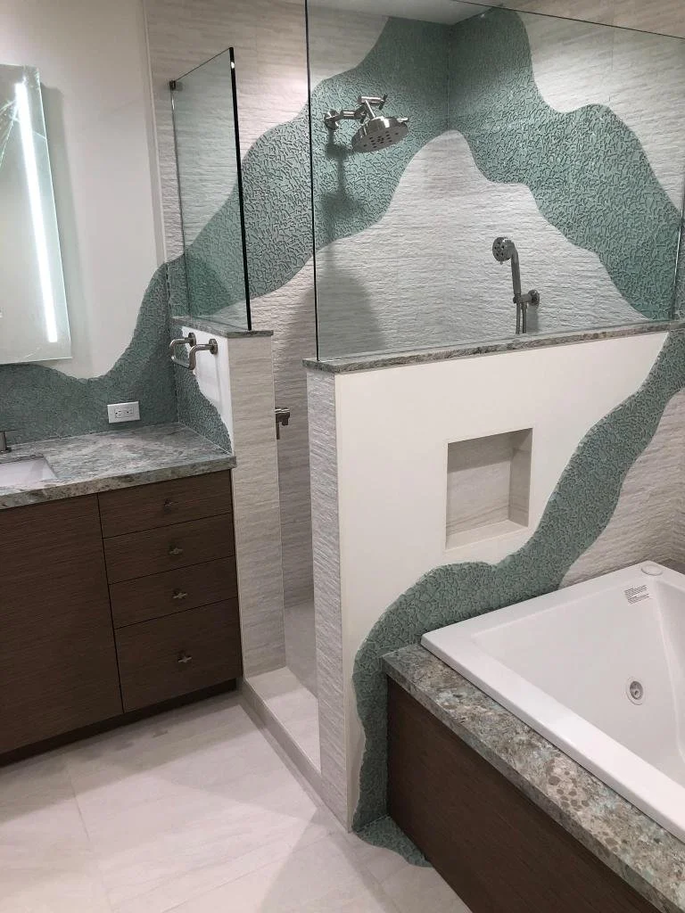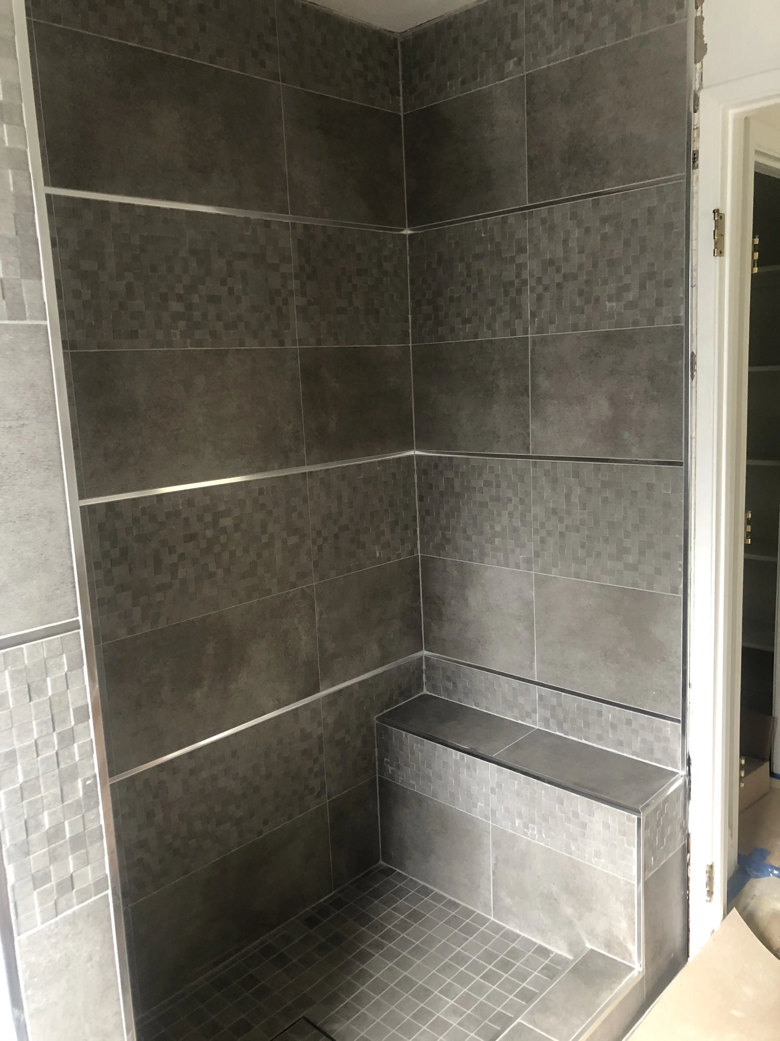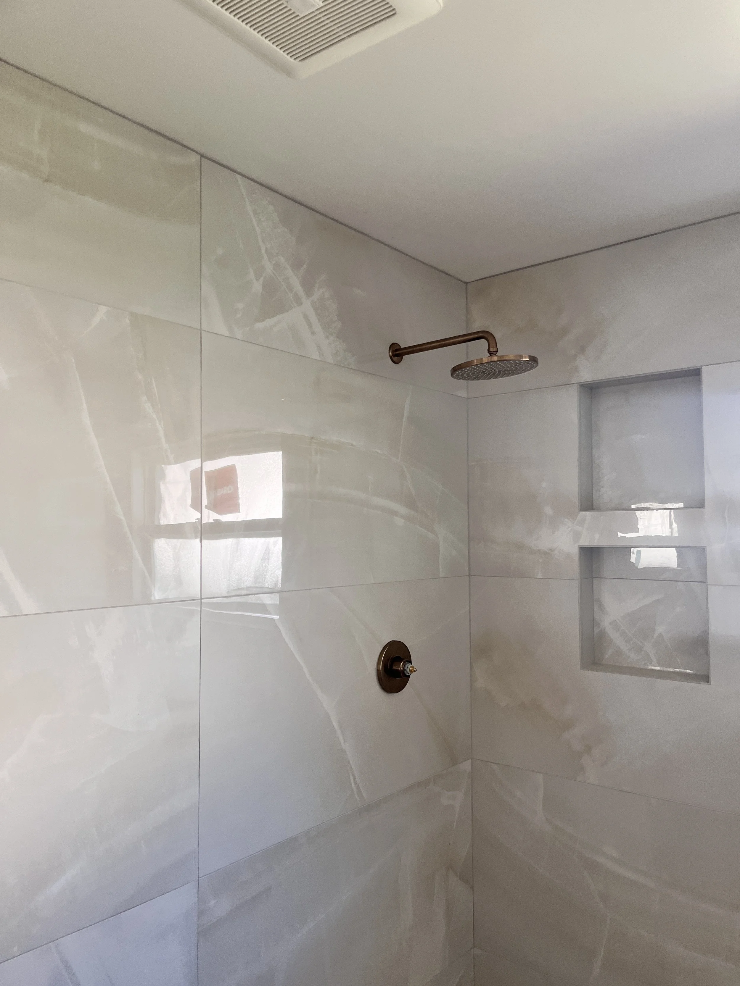 • Ever did a fantastic job with the tile layout and custom niche design for all our bathrooms it turned out perfect. Thank you !!!